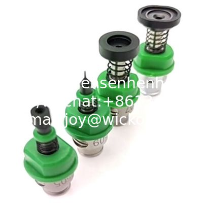 The JUKI nozzles have springs, the 700 series body is titanium gold, the 2000 series is white. The body is made of high quality steel, fine grinding of inner hole, heat treatment of materials, and the surface of 700 series is vacuum plated gold. 2000 series outer circle polishing electroplating white. The reflector plate is made of green plastic steel with open die pressing. The high-speed head of the nozzle material is made of ceramic and tungsten steel. The inner hole is well matched, the vacuum value is high, not easy to wear.