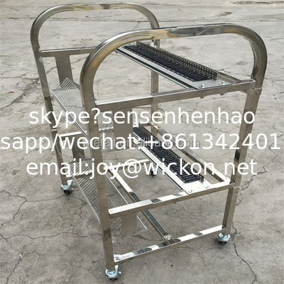 Technology: steel plate die made of feeder positioning plate, and placement machine FEEDER platform, like the feeder placement principle, to achieve a perfect four-point positioning, the top of the use of large arc, to avoid acute angle, the design is divided into upper and lower layers, feeder installed after the sturdy and beautiful, with a grounding chain, effective anti-static;feeder vehicle features: feeder vehicles made stainless steel processing, body firm, lightweight, durable, flexible,the overall feeder platform are used manual welding process, the installation of anti-static towline, free to move,with brake device. Points up and down two layers, a total of 70 feeder can be loaded. Widely used in the SMT production workshop FEEDER turnover and placement, placed a smooth, free to play, greatly increasing the work efficiency. Are made of stainless steel and aluminum.